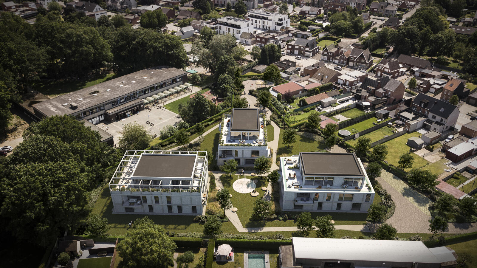 De appartementen zijn verdeeld over 3 gebouwen en bevinden zich in een groene oase van rust. Elk appartement beschikt over 1, 2 of 3 slaapkamers, lichtrijke leefruimtes en een terras. Dit alles rondom rond een prachtige gemeenschappelijke groene binnentuin. Bovendien is het project voorzien van voldoende ondergrondse parkeergelegenheid, bergruimte en fietsenstallingen.